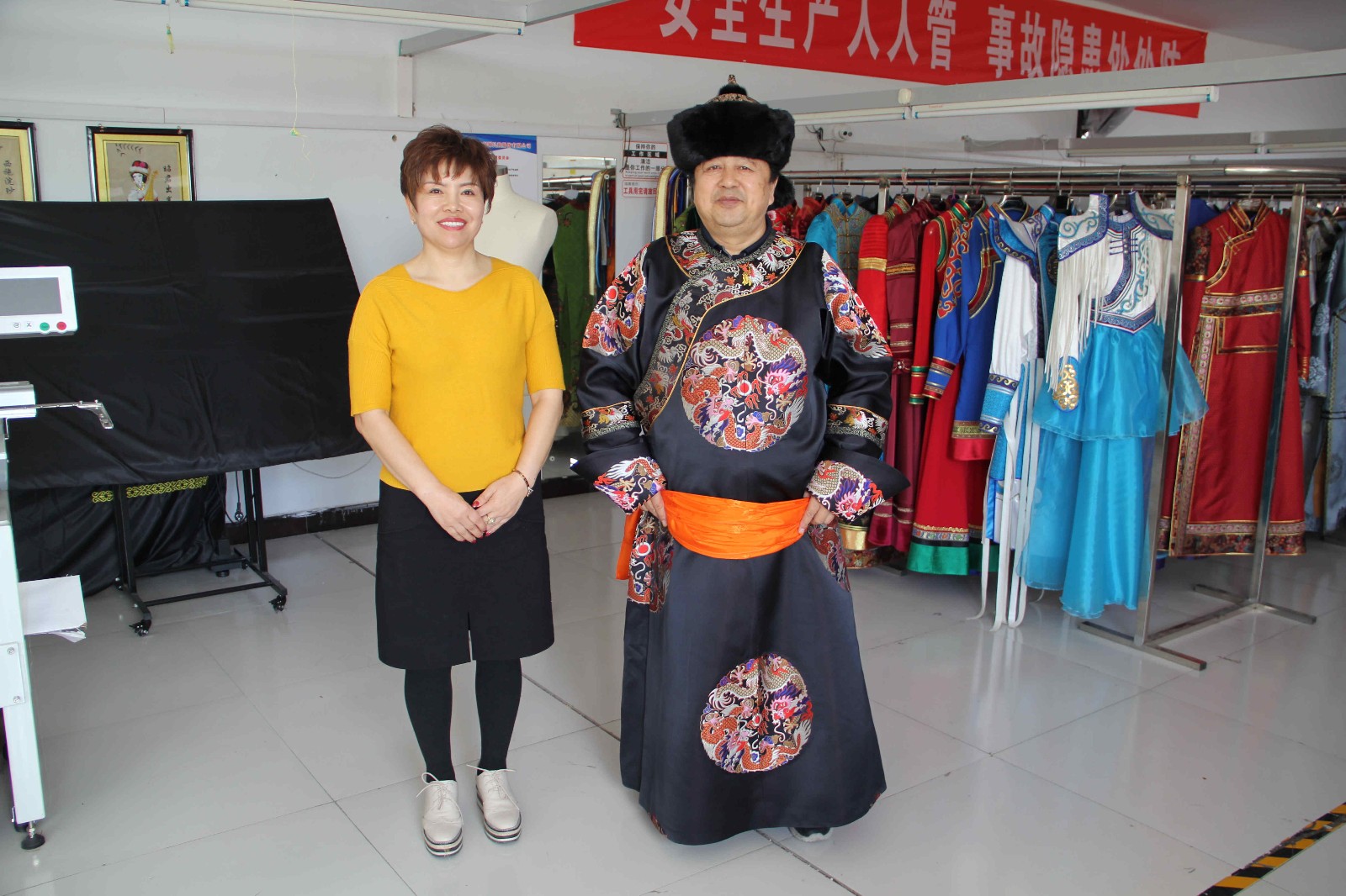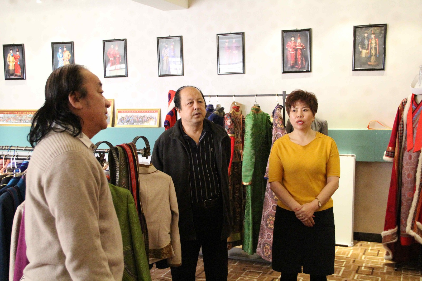 浩特會(huì)長(zhǎng)還饒有興致的試穿了公司生產(chǎn)的服飾,郭建副會(huì)長(zhǎng)就傳統(tǒng)蒙古服裝的制作工藝對(duì)公司的產(chǎn)品給出了指導(dǎo)意見。