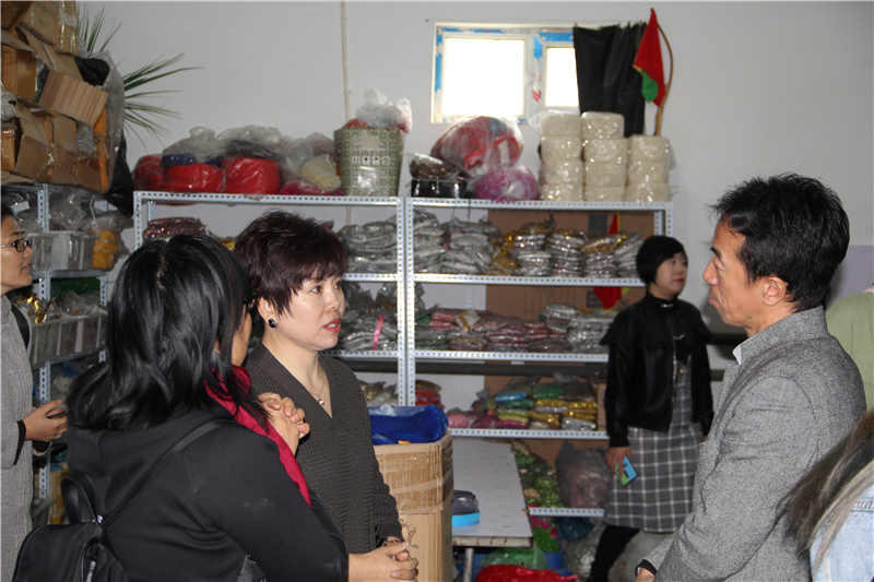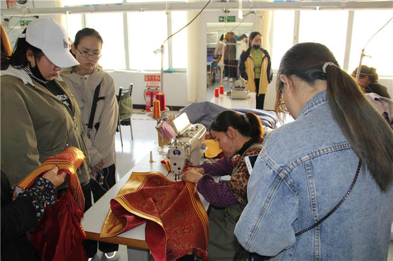 康總經(jīng)理帶領(lǐng)師生們共同參觀了生產(chǎn)車間,介紹正在生產(chǎn)的服飾設(shè)計(jì)和工藝