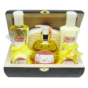 簡(jiǎn)介: [產(chǎn)品名稱:] 沐浴套裝(冬戀) [產(chǎn)品描述:] 內(nèi)容物: 沐浴露 200ml 潤(rùn)膚露 200ml 泡泡浴 280ml 沐浴球 31g 浴鹽 160g 皂花 25g 木盒